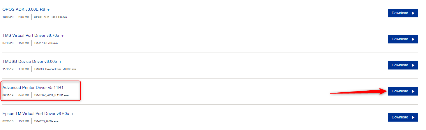 For TM-T88V - https://ftp.epson.com/drivers/pos/TM-T88V_APD_5.11R1.exe